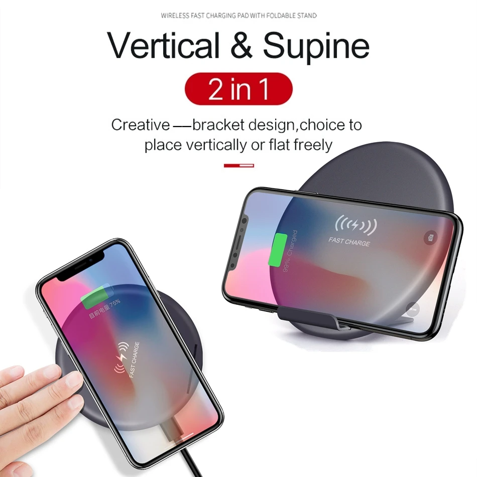 Special Price for Fast Wireless Charger Pad 2 In 1 10W Qi Wireless Charge Holder for Samsung Galaxy S9 for IPhone XS