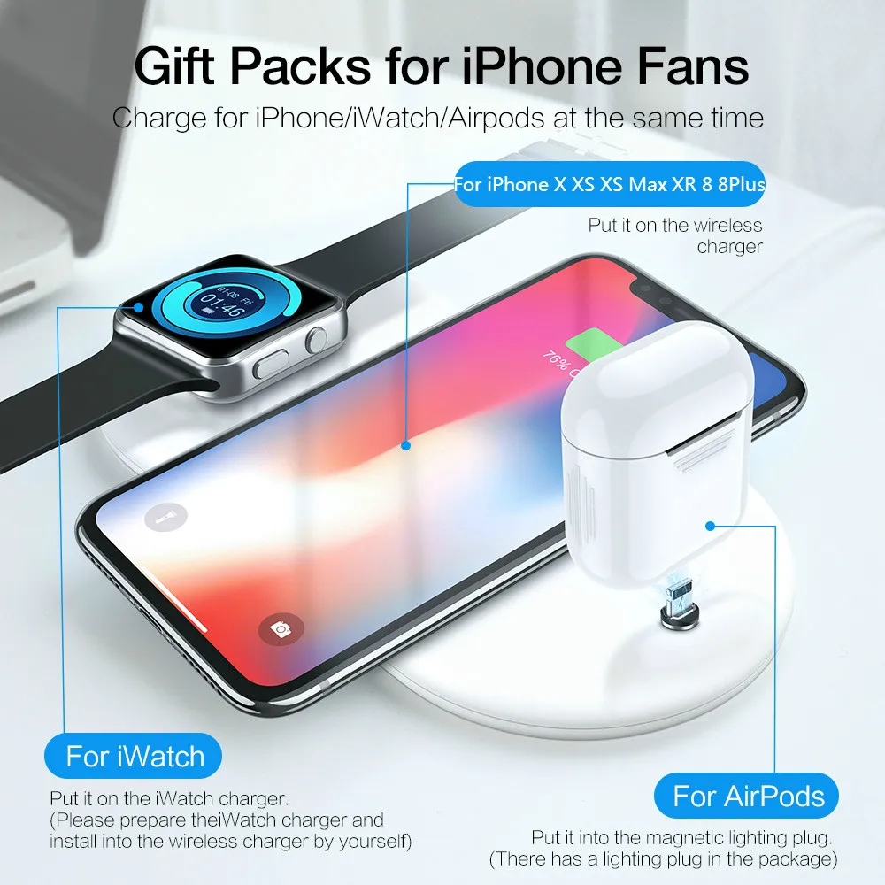 If You will buy for QI Wireless Charger For Apple Watch iphone AirPods Chargers 3 in 1 Wireless Charger For iPhone X XS, then QI Wireless Charger For Apple Watch iphone AirPods Chargers 3 in 1 Wireless Charger For iPhone X XS is possible make you like